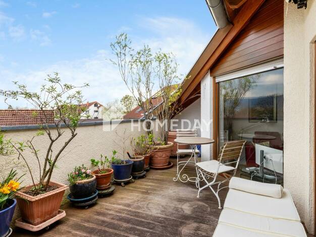 Diese helle 2-Zimmer-Wohnung befindet sich im Dachgeschoss eines sehr gepflegten Mehrfamilienhauses mit insgesamt nur sechs Einheiten. Mit etwa 57 m² Wohnfläche bietet die Wohnung ein durchdachtes Ra...