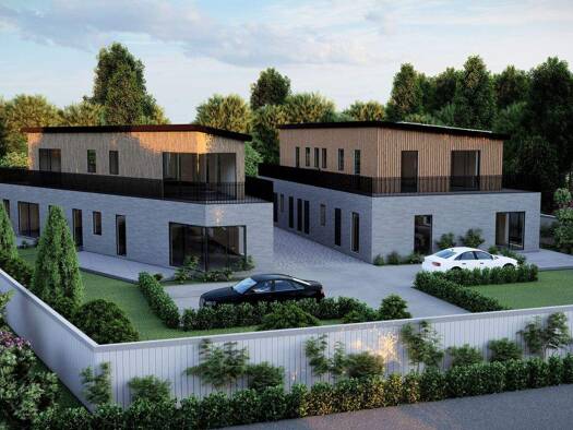 Bei dem Bauvorhaben handelt es sich um vier Doppelhaushälften mit jeweils zwei Wohneinheiten. Die Gebäude werden in massiver Bauweise errichtet und erhalten ein modernes Pultdach, das sowohl architek...