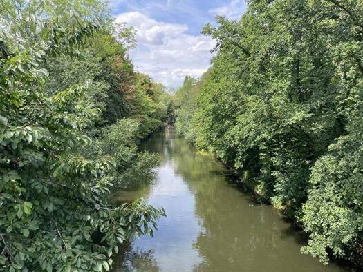 Elsterblick vom Balkon und Aufzug im Haus Die Wohnung befindet sich im 1. Obergeschoss eines modernen und sehr gepflegten Wohnhauses aus dem Jahr 1998. Ca. 50 m² Wohnfläche verteilen sich auf zwei gu...