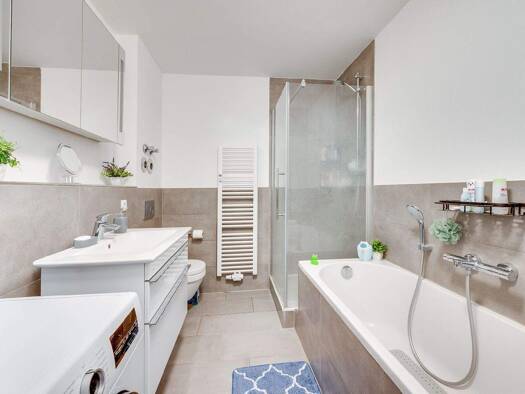 Diese elegante 2-Zimmer-Wohnung im Neubau "Karls Gärten" vereint nachhaltiges Wohnen mit modernem Komfort auf ca. 41 m². Der offene Wohn-, Koch- und Essbereich mit direktem Zugang zur Loggia schafft ...