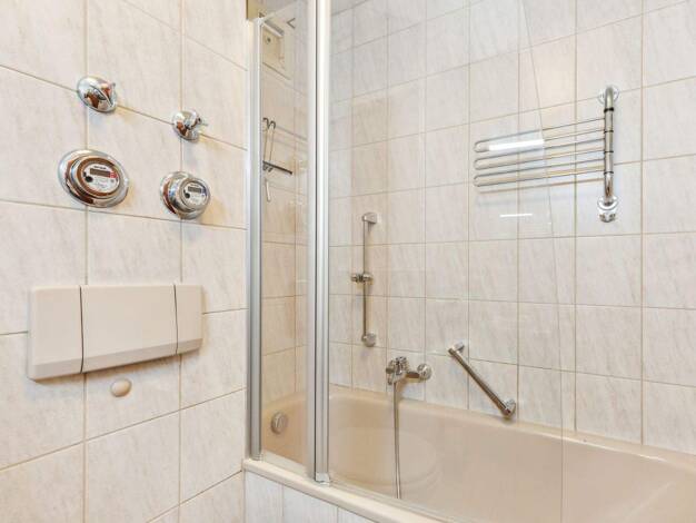 Die Wohnung mit der Nummer 118 befindet sich im Erdgeschoss auf der rechten Seite (mit Aufzug) und hat eine Wohnfläche von 64 Quadratmetern. Sie besteht aus einem Flur, einer Abstellnische, einem Sch...
