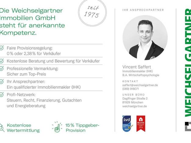 Gerne stehen wir Ihnen für individuelle Beratungstermine zur Verfügung! Terminvereinbarung unter: 089 / 66 59 60 oder unter info@walser-immobiliengruppe.de! Unser Info-Pavillon befindet sich dir...