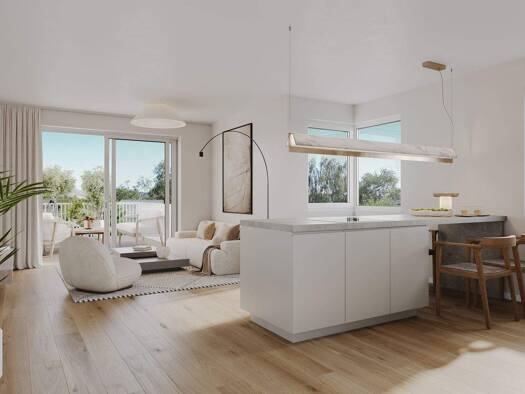 Außergewöhnliche Lichtfülle auf ca. 63 m² Wohnfläche: Dieses charmante Domizil befindet sich im 1. Obergeschoss eines exklusiven Neubau-Ensembles und vereint modernen Wohnkomfort mit einem intelligen...