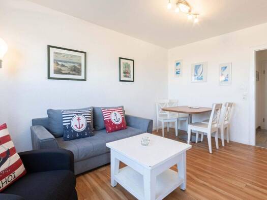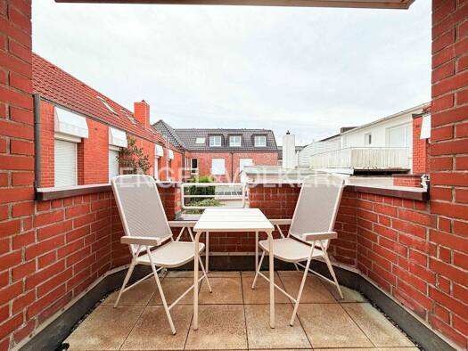 Objektbeschreibung Diese helle und gepflegte 2-Zimmer-Wohnung mit großzügigem Balkon befindet sich in einem gepflegten Mehrparteienhaus inmitten der beliebten Poststraße auf Norderney. Durch die zent...