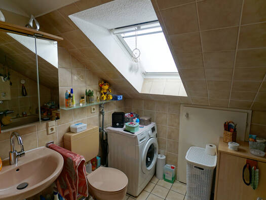Die Dachgeschosswohnung mit einer Wohnfläche von etwa 65 m² befindet sich in einem Gebäude aus dem Baujahr 1983. Die Wohnung ist im Dachgeschoß gelegen und verfügt über einen Parkplatz im Außenbereic...