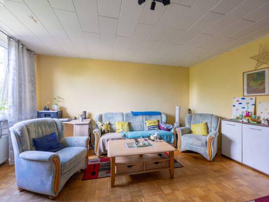Die 2-Zimmer-Erdgeschosswohnung befindet sich in einem gepflegten 8-Familienhaus, das circa 1960 errichtet wurde. Die rund 63 m² Wohnfläche teilen sich in ein Wohnzimmer mit anschließendem Schlafzimm...