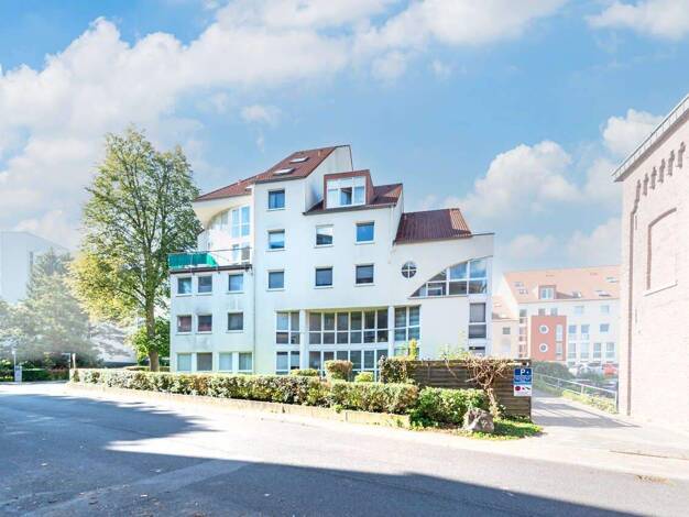 Die stilvolle Wohnung befindet sich im 2. Oberschoss eines nur zweistöckigen Hauses, das über 18 Einheiten verfügt. Das Gebäude ist ansprechend verklinkert und vermittelt einen sehr gepflegten Eindru...