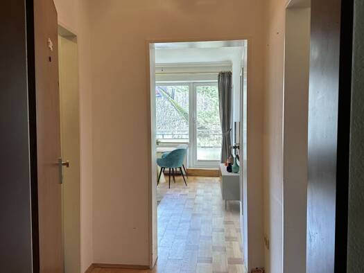Bereits beim Betreten der Wohnung empfängt Sie ein zentral gelegener Flur, der alle Räume effizient miteinander verbindet. Der Eingangsbereich bietet Platz für eine Garderobe und unterstreicht den du...