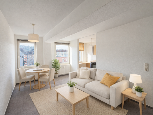 Diese charmante und modernisierte 2-Zimmer-Wohnung aus dem Baujahr 1975 befindet sich im Herzen von Stuttgart, direkt am Berliner Platz. Mit einer Gesamtwohnfläche von 64,88 qm bietet die Wohnung gro...