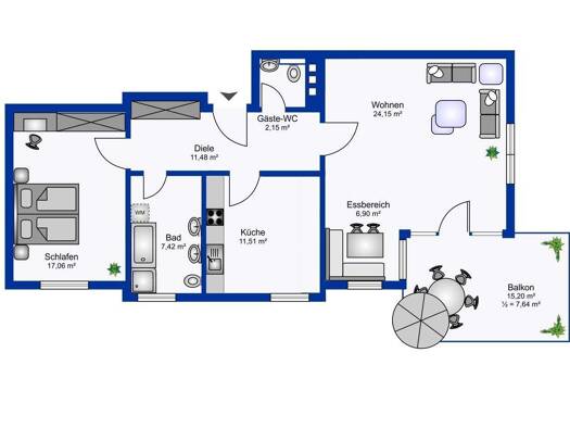 Über das gepflegte Treppenhaus oder den Aufzug gelangen Sie Ihre Wohnung im 2. Obergeschoss. Die Diele erweitert sich zum hellen und lichtdurchfluteten Wohnzimmer mit Sonnenloggia und wunderbarem Bli...