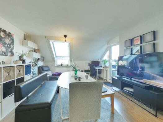 Kurzbeschreibung Lichtdurchflutete Dachgeschoss-Wohnung mit großer Süd-Loggia Objekt Auf einem Grundstück in ruhiger, grüner Wohnlage in einem gewachsenen Wohngebiet in unmittelbarer Nähe von Wiesen ...