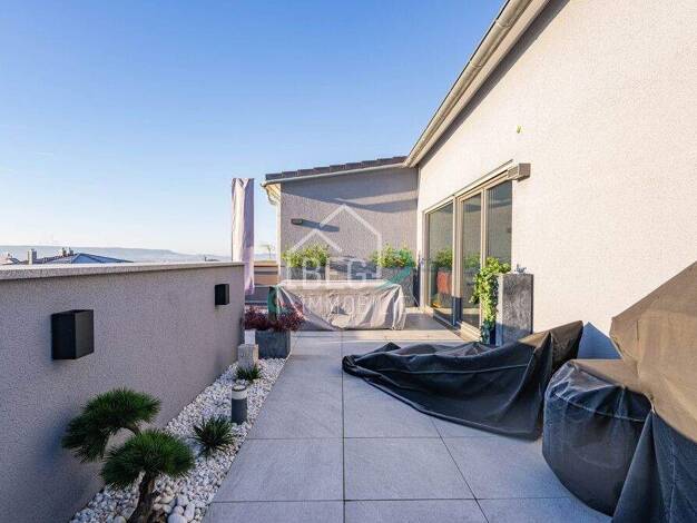 Auf der Wohlfühlskala ganz oben! Genießen Sie Ihre Zeit auf der SÜD-Dachterrasse oder dem lichdurchfluteten Wohn-Essbereich. Himmlisches Wohnen bietet Ihnen die ausgeklügelten Details wie ein zeitlos...