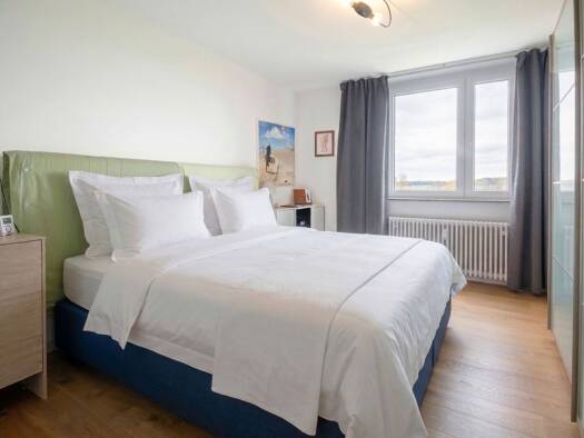 Diese helle, sonnige, gepflegte und möblierte 3-Zimmer-Wohnung befindet sich im 4. Obergeschoss eines Hochhauses mit 120 Wohneinheiten. Das Hochhaus wurde 1961, freistehend, 17-geschossig, 2-fach unt...