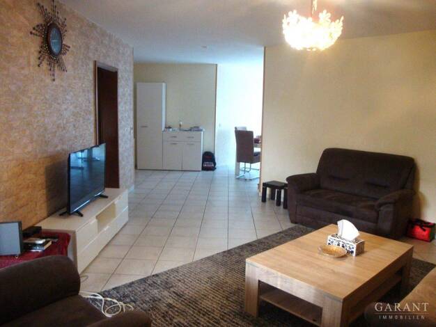 Die Wohnung besticht durch ihre offene, helle, moderne Gestaltung. Mittelpunkt ist der Wohnbereich mit Zugang zur großzügigen Terrasse, teilweise überdacht und mit Rasenanteil. Angrenzend befindet si...