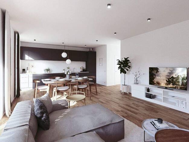 Das junge Gebäude besticht mit hellen und modernen Räumen. Ein großzügiger und raffinierter Schnitt bildet die Basis für ein offenes Wohngkonzept und bietet ausreichend Platz für eine Familie. Das Zu...