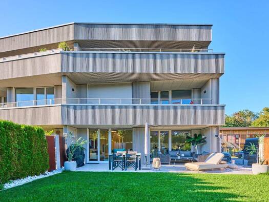 Schon vom ersten Anblick kommt man bei dieser Wohnung in der Wohnlage Lagom gar nicht aus dem Staunen. Die mit Holzlatten versehen Aussenwände der Häuser im elegantesten Design vom Architekturbüro Ly...