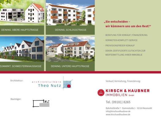 Neubau AM KREUZBERG DEINING Wo Generationen wohnen - Ihre Zukunft hat ein Zuhause! An der Anhöhe "Kreuzberg" im südlichen Zentrum von Deining entstehen zwei stilvolle Mehrfamilienwohnhäuser, die viel...