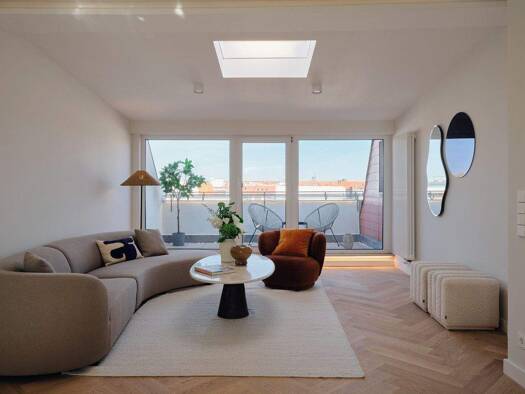 Diese außergewöhnliche Dachgeschosswohnung erfüllt den Traum vom stilvollen Wohnen über den Dächern der Stadt - ein Rückzugsort voller Licht, Ruhe und urbaner Eleganz. Auf rund 90 m² entfaltet sich e...