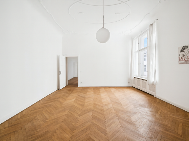 Diese elegante Wohnung überzeugt durch fein erhaltenen Stuck, klassisches Fischgrätparkett sowie beeindruckende Deckenhöhen von mehr als 3,50 m. Der durchdachte Grundriss umfasst drei helle Zimmer, e...