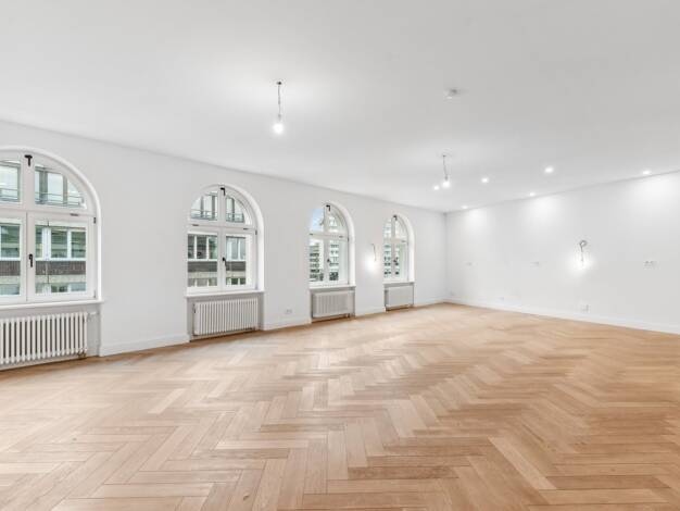 Ganz oben angekommen eröffnet dieses Penthouse eine neue Perspektive auf das urbane Leben in Berlin-Mitte. Auf ca. 154 m² Wohnfläche verbindet diese Wohnung ein offenes Raumkonzept mit klarer Archite...