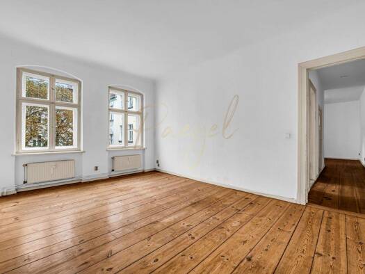 Die bezugsfreie Altbauwohnung im 1. Obergeschoss des Vorderhauses wirkt sofort offen und großzügig: rund 100 m², drei gut geschnittene Zimmer und ein Grundriss, der Platz lässt - für Wohnen, Arbeiten...