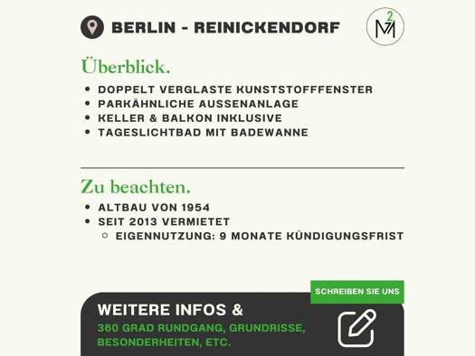 Gepflegt, funktional und gut gelegen - diese 3-Zimmer-Wohnung in Berlin-Reinickendorf verbindet Komfort mit solider Wertstabilität. Das Gebäude wurde 1954 errichtet und 2010 modernisiert. Die Wohnung...