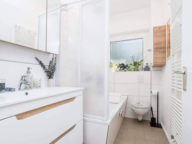 Auf rund 66 m² entfaltet sich eine Wohnung, die durch Klarheit und Ruhe überzeugt. Der Grundriss ist so gestaltet, dass jeder Raum seine eigene Funktion entfalten kann: ein helles Schlafzimmer, ein w...