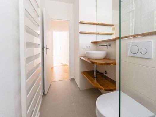 Diese barrierefreie Neubauwohnung drängt sich nicht auf, sondern öffnet leise die Tür zu einem Alltag mit Leichtigkeit: morgens barfuß mit einem Kaffee auf der eigenen Terrasse, die Vögel im Ohr und ...