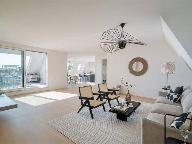In einem prachtvollen Gründerzeitaltbau erwartet Sie dieses außergewöhnliche Dachgeschossjuwel mit rund 177 m² lichtdurchfluteter Wohnfläche. Die offene Grundrissgestaltung sorgt für ein luftiges Rau...
