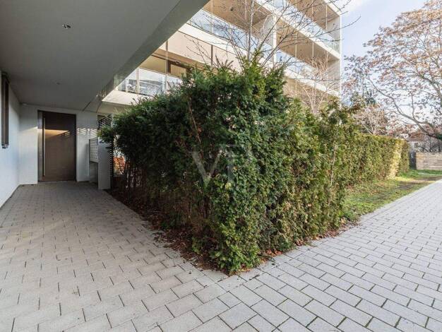 Die Erdgeschosswohnung in der Schützengasse 20 liegt in einem modernen Mehrfamilienhaus, das 2017 errichtet wurde. Die Einheit umfasst drei Räume, darunter eine offen gestaltete Wohnküche, die den Mi...