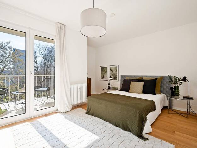 Diese elegante Drei-Zimmer-Wohnung im 8. Obergeschoss überzeugt mit einem unvergleichlichen Panoramablick über das Europaviertel. Besonders eindrucksvoll sind die geschützte Loggia, die zum Verweilen...