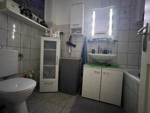 Die Wohnung liegt in der 2. Etage eines sehr gepflegten Mehrfamilienhauses aus dem Baujahr 1980. Direkt von der Friedrich-Ebert-Straße aus erschließt sich die Einfahrt und der gepflasterte vordere Gr...