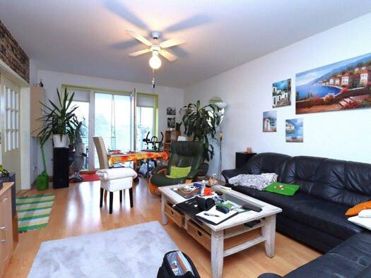 Die Wohnung hat eine Fläche von ca. 76 m² und teilt sich in ein Wohnzimmer, zwei Schlafzimmer, eine Küche, ein Vollbad sowie einen Balkon auf. Zur Wohnung gehört außerdem ein Abstellraum im Keller. V...