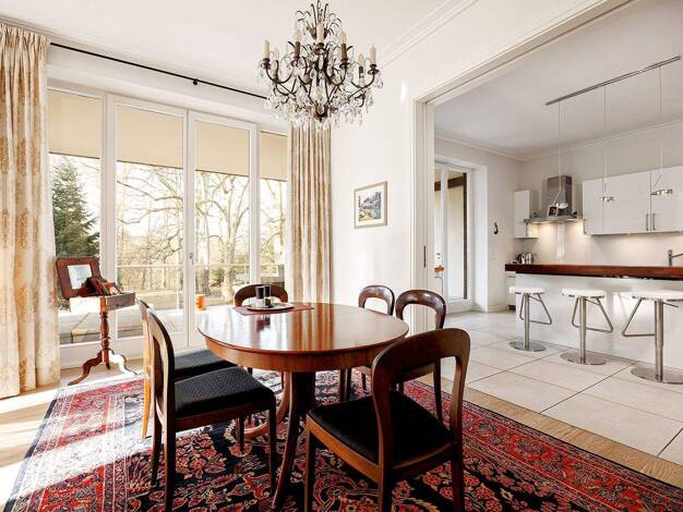 Einzigartig wohnen in Hamburg-Wellingsbüttel: 3-Zimmer-Eigentumswohnung mit beeindruckendem Rondell und ca. 4 Meter Raumhöhe, schönem Kamin, einer Loggia, einem Balkon sowie einem großzügigen Tiefgar...