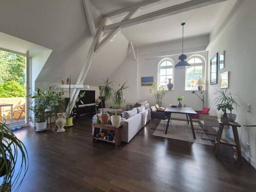 Die ca. 76?m² große Maisonette-Wohnung befindet sich im 4. Obergeschoss und Dachgeschoss eines gepflegten Mehrfamilienhauses und überzeugt mit einer durchdachten Raumaufteilung. Auf der unteren Ebene...