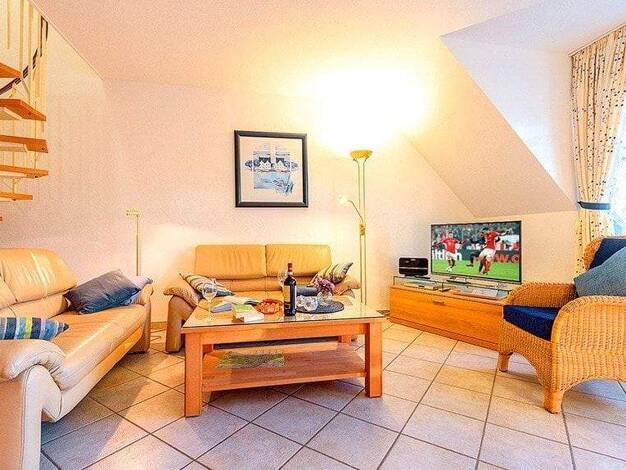 Objekt:Die Ferienwohnung liegt gemäß Bauplan im Haus III der Anlage im I. Obergeschoss und wurde als Wohnung mit einer Maisonette gebaut. Die Anlage mit den 5 Häusern und dem vielen Grün rundherum wu...