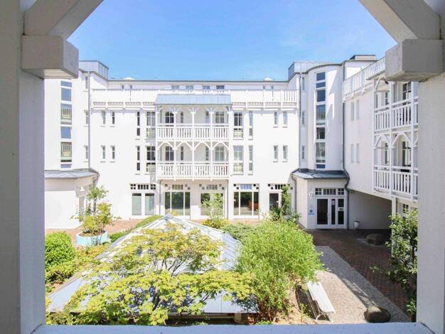 LAGE: PARK - STRAND - ZENTRAL UND RUHIG! Zwischen Kurpark und Standpromenade, parkähnliche geschützte Lage mit wertvollen, schattenspendenden Laubbäumen und sonnigem Gemeinschaftspool, Strandpromenad...