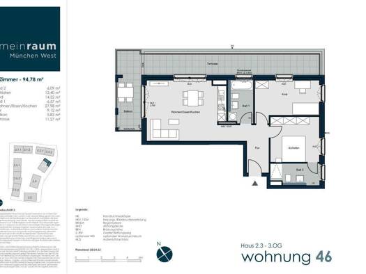 Kurzbeschreibung Modernes urbanes Wohnen und trotzdem noch Naturnah ! Objekt Die im Jahre 2022 neu errichtete , moderne 3-Zimmer-Eigentumswohnung mit ca. 79 m² Wfl.befindet sich im 2. Obergeschoss ei...