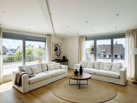Diese Dachgeschoss-Wohnung befindet sich in einem Mehrfamilienhaus mit zehn Wohneinheiten. Das Gebäude besticht durch seine einzigartige Fassade und eine optimale Ausrichtung, die für maximalen Licht...