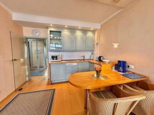 Objektbeschreibung Diese Wohnung befindet sich in ausgezeichneter Lage direkt am Meer. Sie teilt sich auf in einen Wohn-/ Essbereich mit Übergang zur Küche, zwei separate Schlafzimmer und das Badezim...