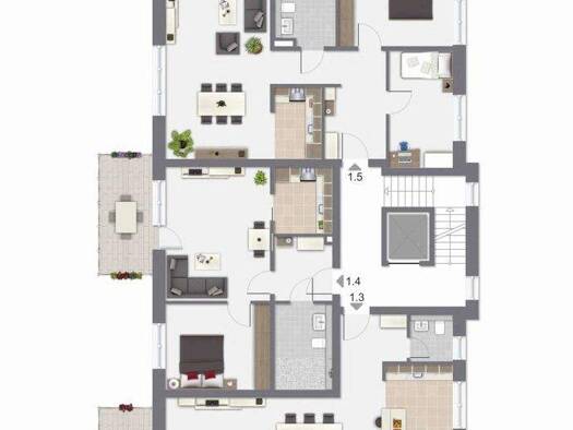 Diese moderne Wohnung liegt im Dachgeschoss eines Mehrfamilienhauses. Die insgesamt 86 Quadratmeter teilen sich dabei harmonisch auf. Das großzügige und helle Wohnzimmer mit offener Küche stellt den ...