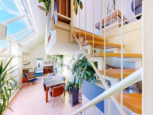 Diese Dachgeschoss-Galeriewohnung in Nürnberg-Röthenbach überzeugt durch ein offenes Raumgefühl und eine klare, zeitlose Architektur. Großzügige Fensterflächen sorgen für viel Tageslicht und verleihe...