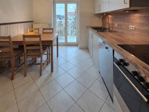 Objektbeschreibung AUSSTATTUNG o Wohnfläche: ca. 118 m² o 3 Zimmer, Ankleideraum, Küche, 1 Wannenbad, 1 Duschbad, Loggia o zweigeschossiges Wohn- und Geschäftshaus mit ausgebautem Dachgeschoss o Denk...