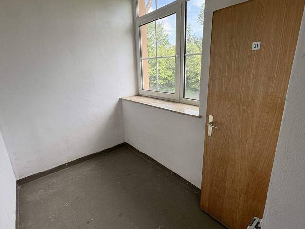 Das ca. 1958/1959 errichtete Gebäude besitzt zwei Hauseingänge mit jeweils nur sechs Wohnungen. Insgesamt gehören 36 Wohnungen zur Gesamtanlage. Die im zweiten Obergeschoss gelegene, leerstehende Woh...
