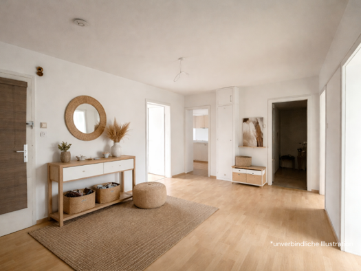 Objektnr: 1070690 Diese helle 3-Zimmer-Wohnung auf ca. 70 m² im 2. Obergeschoss eines Baujahrs 1954 überzeugt durch ihren durchdachten Grundriss und ein einladendes Wohnambiente. Das großzügige Wohnz...