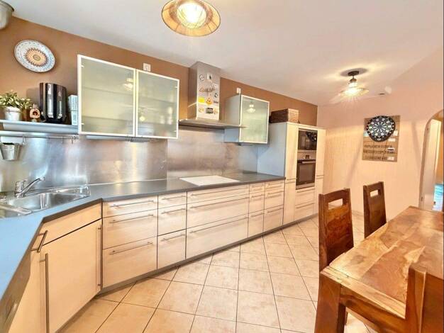 Die 4-Zimmer-Wohnung im 1. Obergeschoss eines Zweifamilienhauses aus dem Jahr 1974 beeindruckt mit einem großzügigen Wohnkonzept auf rund 148 m² und einem verglasten Balkon/Wintergarten, der einen tr...