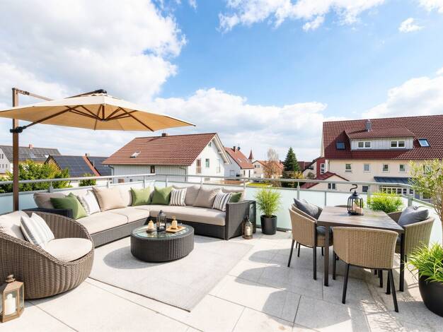 Willkommen in Ihrem neuen Zuhause in Weil im Schönbuch! Diese exquisite Maisonette-Wohnung, erbaut im Jahr 2001 und erstmals bezogen 2012 bietet Ihnen ein luxuriöses Wohnerlebnis auf zwei großzügigen...
