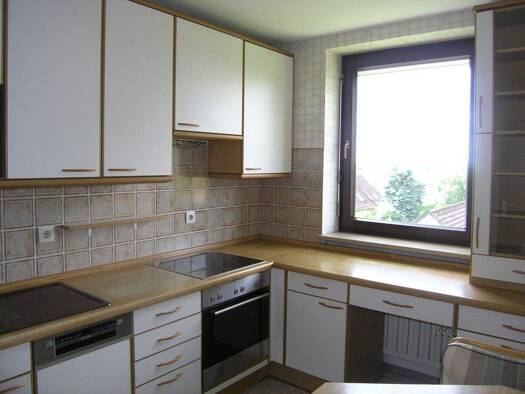 4-Zimmer-Wohnung mit 84 qm Wfl. im Dachgeschoss eines Zweifamilienhauses mit Balkon; Baujahr 1991 - bestehend aus Gang, Bad, WC, Wohnen/Essen/Kochen, Schlafzimmer, 2 Kinderzimmern, Spitzboden und Bal...