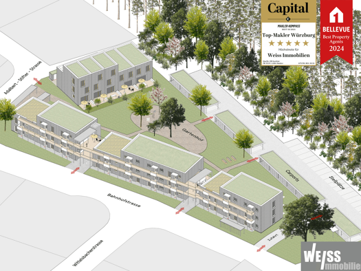 In der begehrten Ortsrandlage von Georgensgmünd in der "Bleichel" entsteht in klimafreundlicher Bauweise ein "Effizienhaus 40" Mehrfamilienhaus mit 9 Eigentumswohnungen. Die Wohnungen von 2, 3 und 4 ...