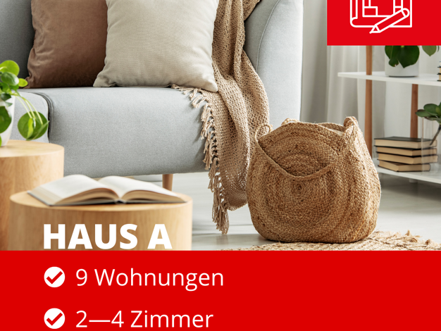Hier entstehen 48 Eigentumswohnungen auf vier Häuser verteilt. Diese werden in zwei Bauabschnitten entstehen. Die Häuser A und B befinden sich im Bau, im Anschluss kommen die Häuser C und D. Verbunde...